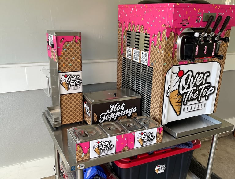 Enjoy the essentials with our classic rental, featuring a professional-grade soft serve machine and stainless steel table—perfect for birthday parties, grad celebrations, and backyard fun.